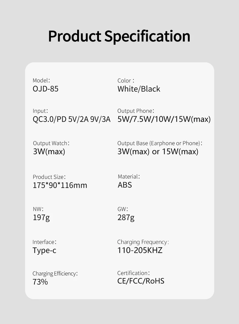 Mobile phone output: 5W/7.5W/10W/15W